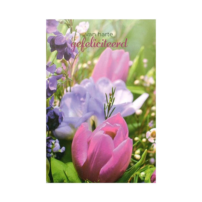 6 Wenskaarten met envelop - van harte Gefeliciteerd - Bloemen