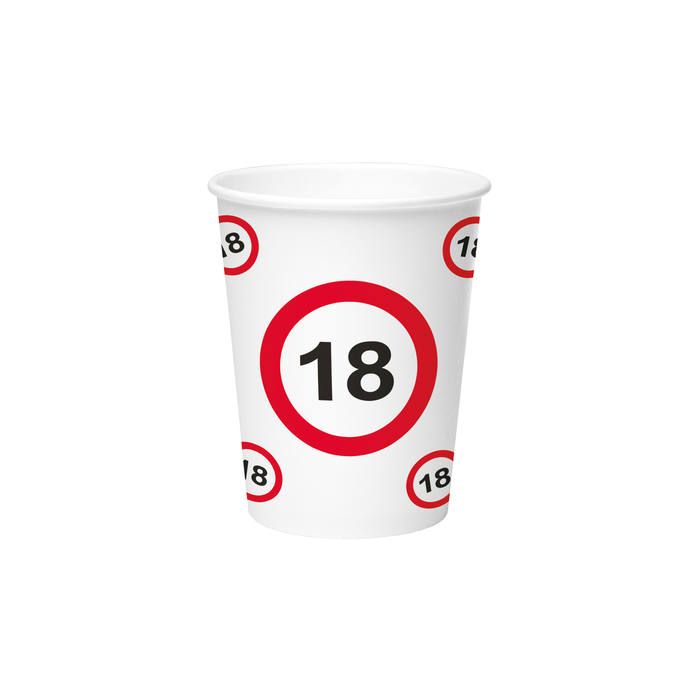 18 Jaar Verkeersbord Papieren Bekers 350ml - 8 stuks