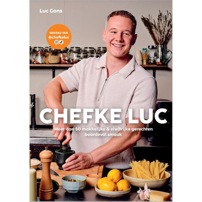 Wil je genieten van overheerlijke gerechten én genoeg eiwitten binnenkrijgen om je macro’s te halen? Met het kookboek van Chefke Luc wordt dat een fluitje van een cent. Luc Gons – beter bekend als Chefke Luc – is dé expert als het gaat om supersmaakvolle eiwitrijke gerechten. Denk aan knapperige tuna melt taco’s of een frisse pokébowl met zalm. Wil je écht uitpakken? Maak dan de allerlekkerste mini beef wellingtons of coquilles met pancetta, asperges en aardpeercrème. Bij elk gerecht staat hoeveel kcal en eiwitten het bevat. Chefke Luc is hét kookboek voor iedereen die gezonder en fitter wil worden zonder in te leveren op smaak.