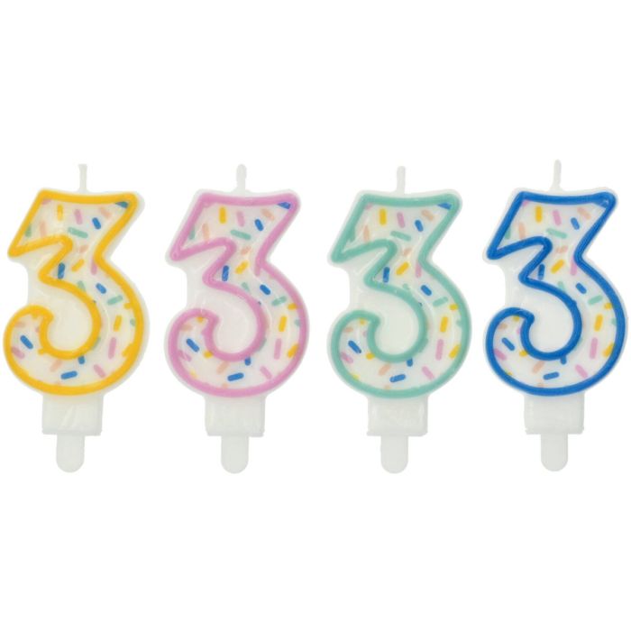 Verjaardagskaars cijfer 3 Sprinkles - 9 cm